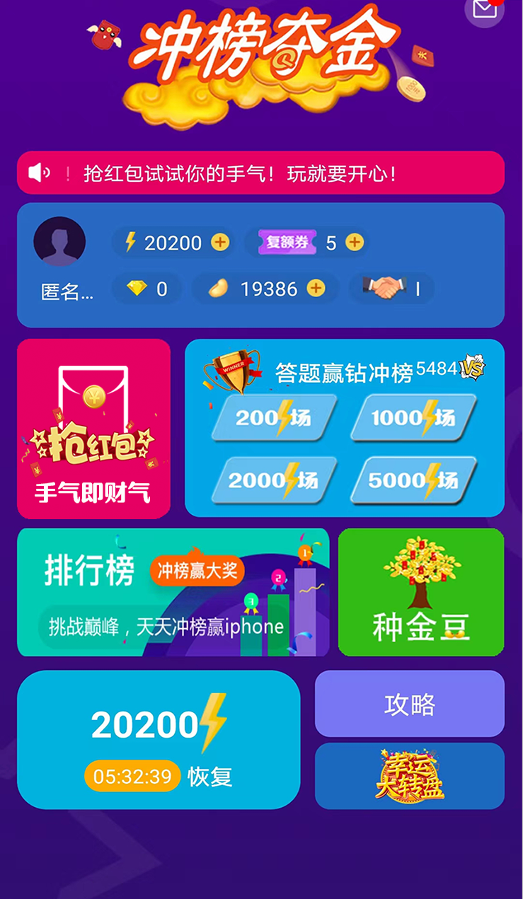 “冲榜夺金”是一款极具挑战性和趣味性的益智竞技答题app软件,旨在增长用户知识、锻炼反应能力和心理承受能力。该软件凭借其丰富多样的题目、紧张刺激的竞答环境、丰厚的奖励设置,以及各种有趣的互动功能,吸引了大量的学习者和知识竞技爱好者。